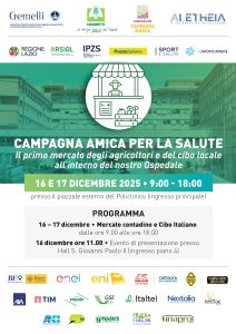 Un evento unico, il primo nel suo genere, che si svolgerà per l’intera giornata nel piazzale antistante l’ingresso principale del policlinico universitario. Un mercato contadino che rappresenta un passo significativo e concreto nel percorso congiunto tra Coldiretti, Fondazione Policlinico Universitario Agostino Gemelli IRCCS e Fondazione Aletheia sul tema del rapporto tra cibo, prevenzione e salute, considerato che numerose evidenze scientifiche dimostrano come le scelte alimentari rappresentino uno dei determinanti più potenti nella prevenzione delle patologie croniche più diffuse.